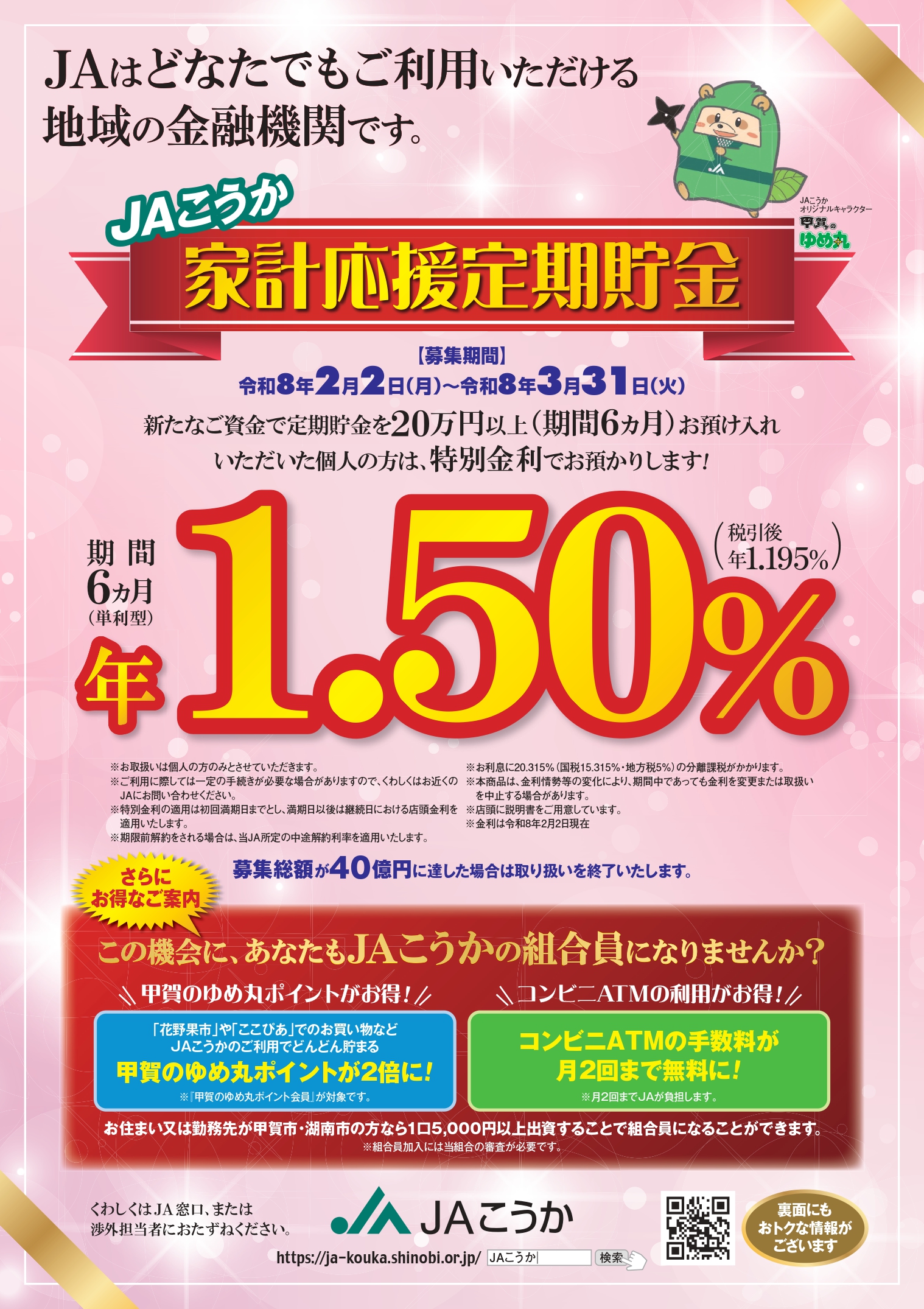 この冬は、JAこうかの『家計応援定期貯金』でおトクにスタートしましょう!